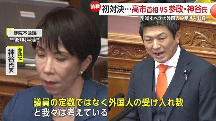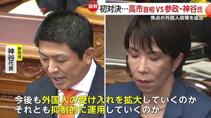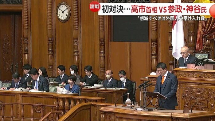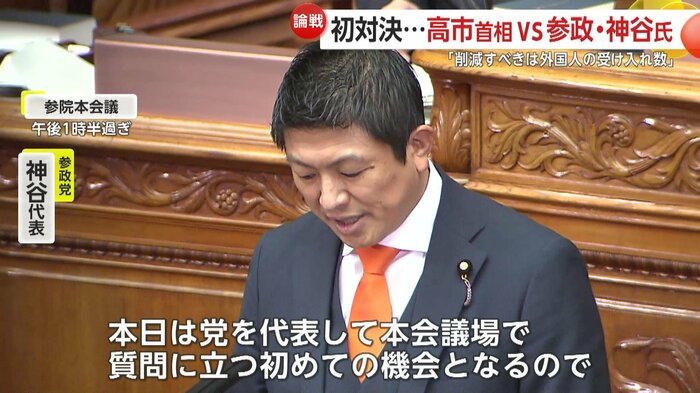 高市首相への代表質問3日目。初めて本会議で代表質問を行う参政党の神谷代表は党が掲げる日本人ファーストの政策を巡り、高市首相を追及した。