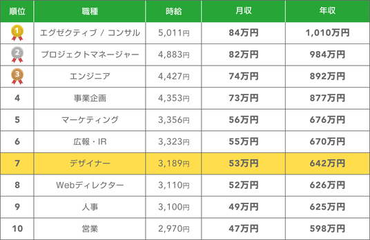 平均年収642万円(職種別年収ランキングトップ10中、7位)