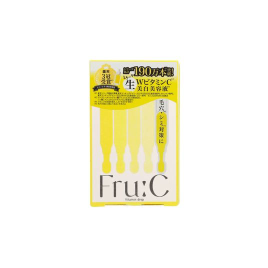 Fru:Cビタミンドロップは、水溶性ビタミンC誘導体と油溶性ビタミンC誘導体をWで配合!美白有効成分***がメラニンの生成を抑え、シミ・ソバカスを防ぎます。