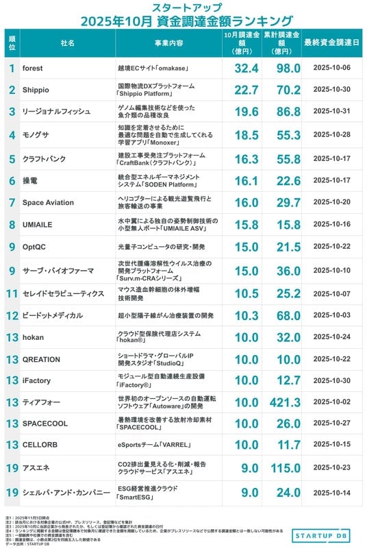 越境ECのforestが32.4億円、国際物流のShippioが22.7億円を調達し、未来のグローバルサプライチェーンを牽引 ──【STARTUP DB】10月スタートアップ資金調達ランキング──