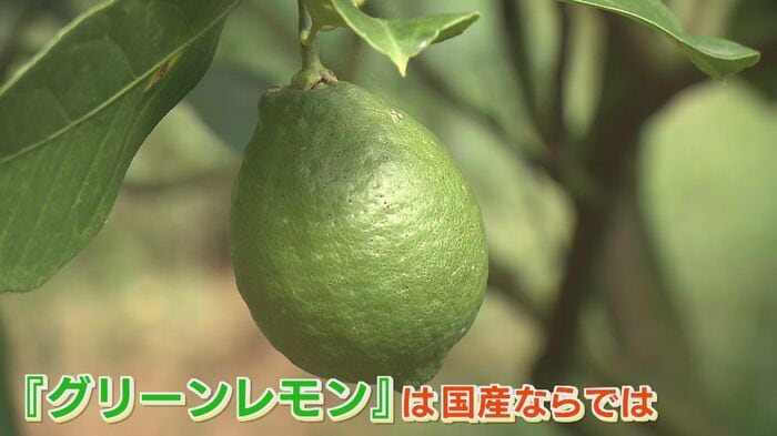 国内で多く流通する海外産のレモンは、長時間かけて日本に届くまでに黄色に色付く。そのため緑のレモンは国産ならではの果物。しかも、収穫時期が10月上旬から僅か2カ月ほどと希少なのだ。
