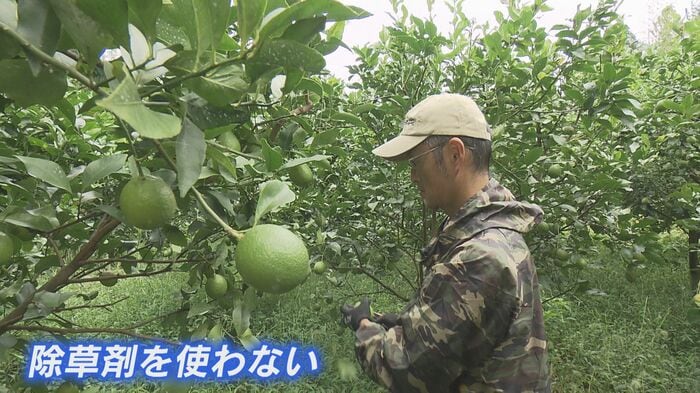 さらに皮まで食べられる阿南さんのレモンは、除草剤を使わないため草刈りだけでも一苦労だったという。