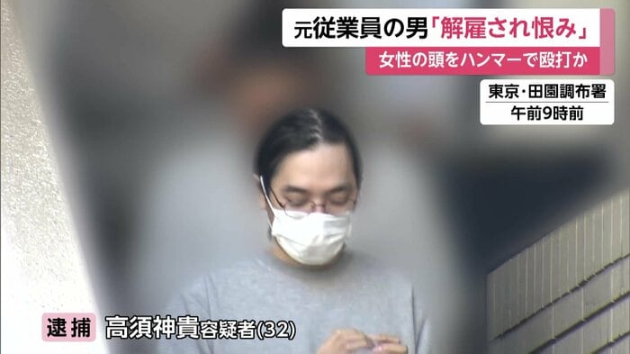 高須神貴(たかす・こうき)容疑者(32)は5日、東京・大田区の会社で50代の女性従業員の頭をハンマーで殴り、殺害しようとした疑いがもたれている。