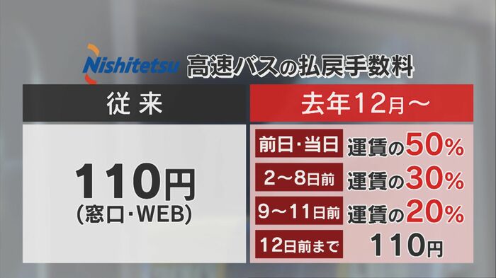 バス会社の損失に直結する相席ブロック。西鉄は、2023年10月に、予約決済の期限の変更。2024年12月にも払い戻し手数料の改訂という対策をとった。