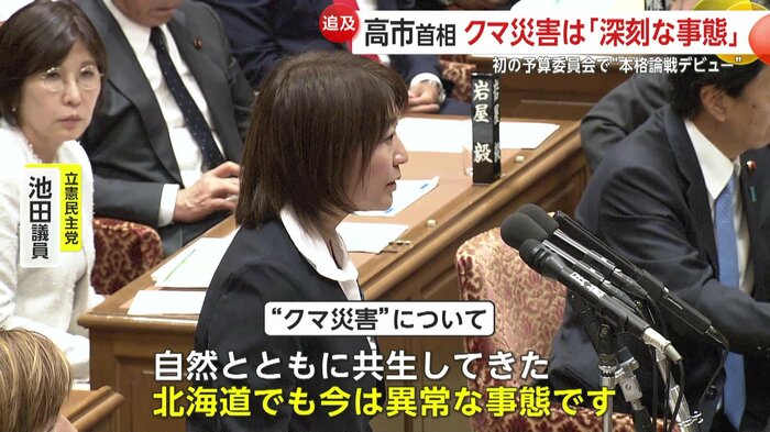 北海道が地元の立憲民主党の池田議員が取り上げたのは、全国に広がるクマ災害について。