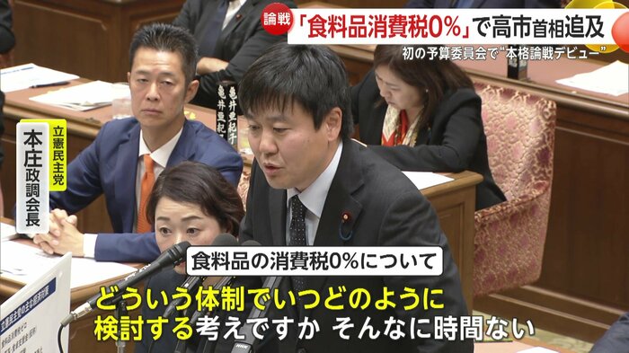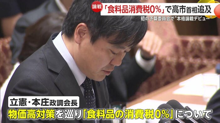 立憲民主党のトップバッター本庄政調会長は、物価高対策を巡り、食料品の消費税0%について迫った。
