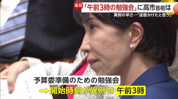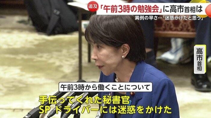 一方、異例の午前3時からの勉強会については、「秘書官、SP(警護官)さん、ドライバーの方にはご迷惑をかけたと思っている」と陳謝した。