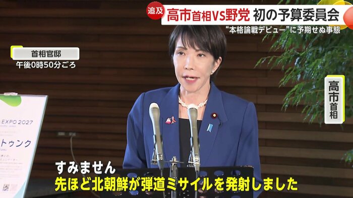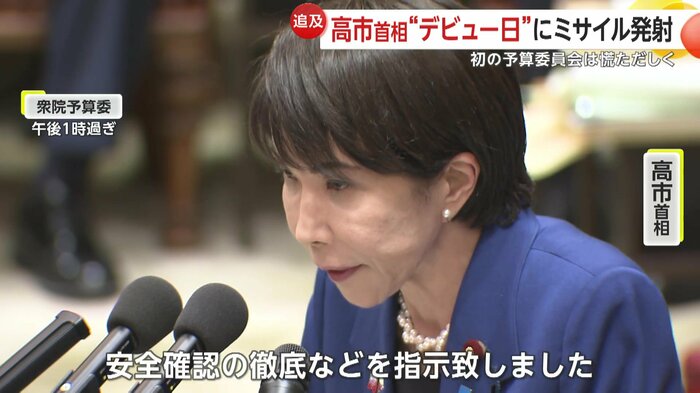 7日、衆院予算委員会に臨んだ高市首相だが、委員会直前に北朝鮮が弾道ミサイルを発射し、対応に追われる慌ただしい、初の本格論戦スタートとなった。