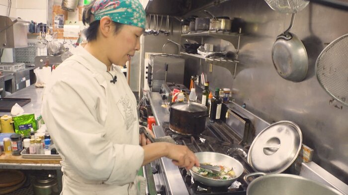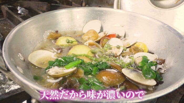 恵美さんは料理へのこだわりについて「素材の味が多い。天然に育っとるから、味濃いし、その素材の味は生かしたいと思うから、そんなにごちゃごちゃ味付けはしてない。あとはもう、なめこのヌメヌメときのこのヌメヌメを合わせるだけ」と語る。