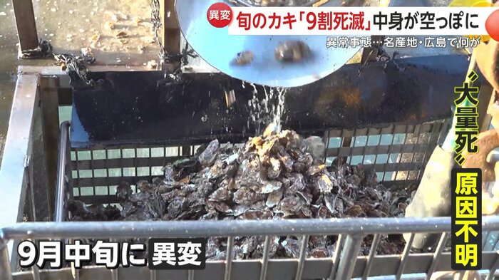 旬の時期を迎えるカキに今、異変が起きていた。広島県の養殖カキに大量死が発生し、水揚げの約9割が死滅したという。原因は高水温や酸素不足などが疑われるが特定されていない。地元産の提供を断念する飲食店や広島・呉市では、ふるさと納税の募集も一時停止されるなど、影響が広がっている。