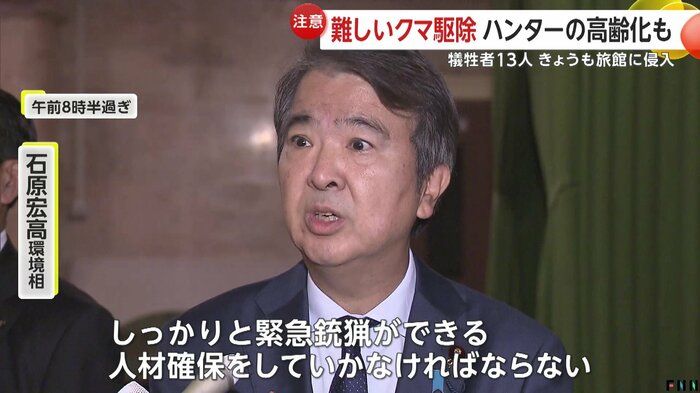 クマの出没が相次ぐ中、2025年度のクマ被害による死者が13人に達し、の状況となっている。