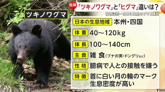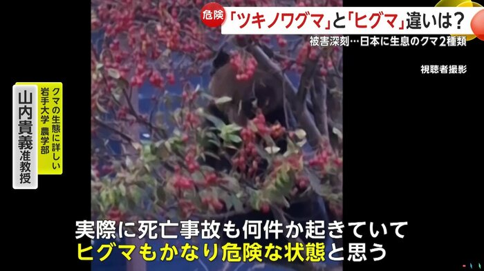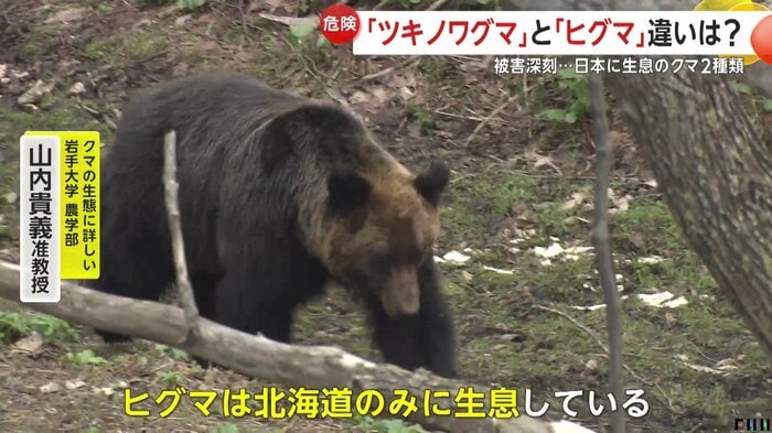 クマの生態に詳しい岩手大学農学部の山内貴義准教授は、「ヒグマは北海道のみに生息している。本州以南、九州をのぞいた本州と四国に生息するのがツキノワグマ」と説明する。