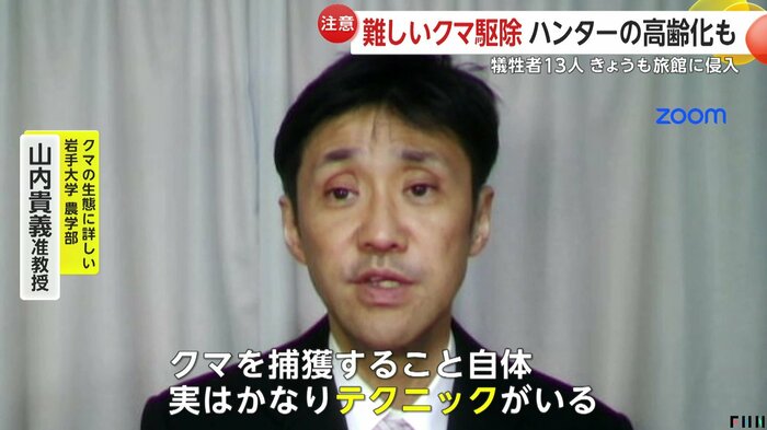 一方で、山内教授はクマの駆除の難しさについて、こう指摘する。