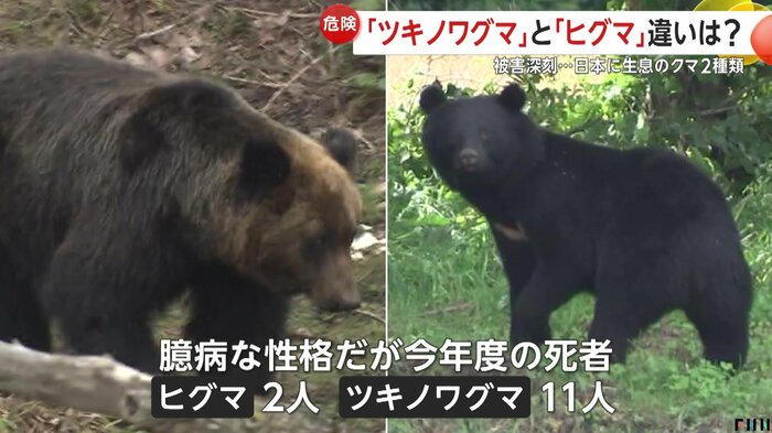 ともに臆病な性格ということだが、2025年度の死者の数はヒグマによるものが2人、ツキノワグマによるものは11人に上っている。