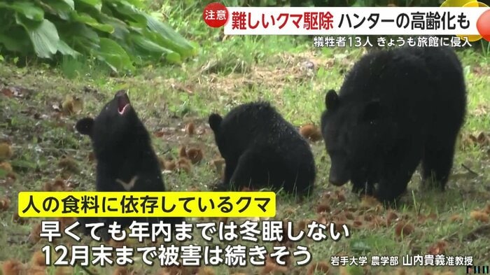 その辺り、専門家によりますと、人の食料に依存しているクマは早くても年内までは冬眠しない。12月末ぐらいまではクマの被害は続きそうだということです。
