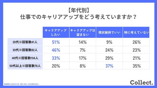- 20代では「キャリアアップしたい」が過半数