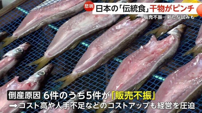 日本の伝統的な加工食品「干物」の製造企業の倒産が2025年、急増していることが分かった。