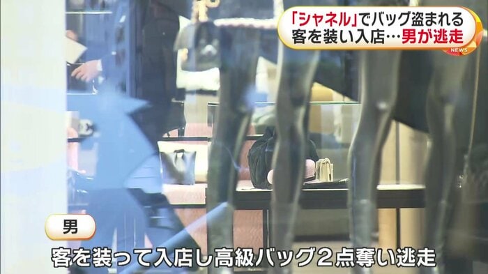 東京・世田谷区にある「シャネル」の店舗から、男が高級バッグ2点を盗み逃走した。