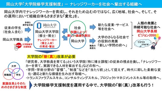 ・【岡山大学】岡山大学「大学院修学支援制度」を始動 ~大学職員の高度化のひとつの手段としてナレッジワーカーとしての博士人材を育成・活用し、かつ大学法人経営や大学院改革の強化へ~