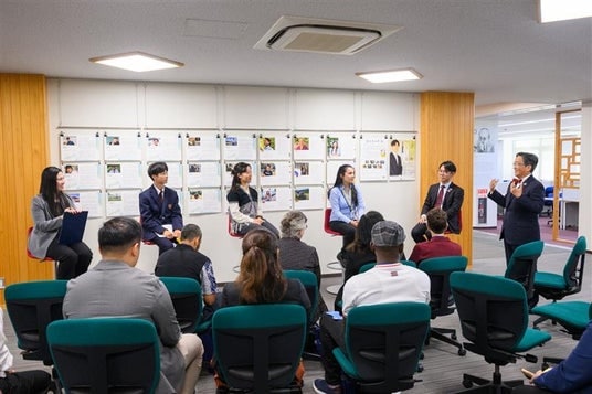 このうち、23日に本学で実施したフィールドビジットでは、共創イノベーションラボ(KIBINOVE)をはじめとした学内施設の視察を企画・実施。同会議の参加者30人、関係機関の陪席者13人、実施協力の本学学生8人など、およそ50人が参加しました。