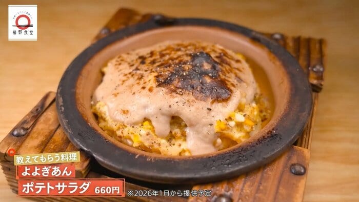 植野さんが紹介するのは「ポテトサラダ」。東京・代々木の酒場「よよぎあん」を訪れ、ほくほくのじゃがいもに滑らかな里芋ソースを乗せ、焦がしバターとマヨネーズの香ばしさで焼き上げる温かい一皿を紹介。