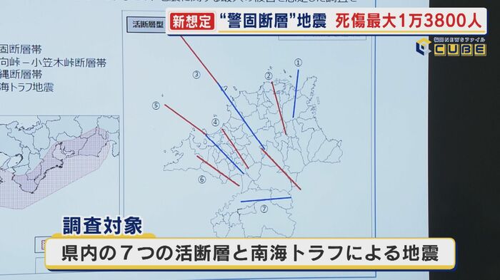 調査の対象となったのは、県内7つの活断層と南海トラフによる地震。このうち、福岡市の中心部を通り、西方沖地震の震源になった警固断層帯は、国が示す分類では最も危険度が高いSランク。今後30年以内の発生確率が3%を超える最も危険な断層に分類された警固断層。最大震度7の揺れが予測されている。