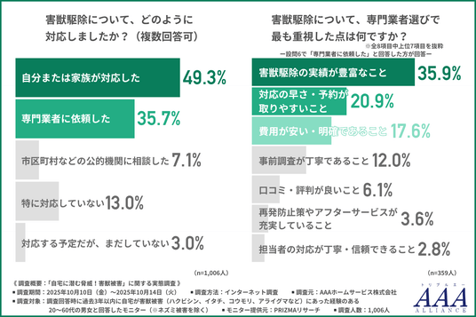 約半数が自力で駆除対応。満足度約9割の専門業者に見る「信頼の条件」とは