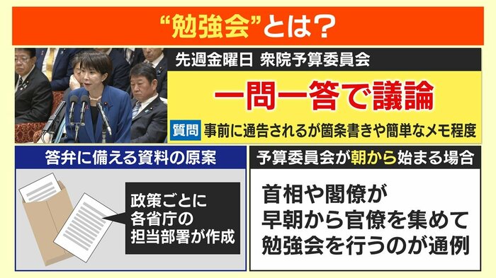早朝から勉強会を開いた理由として高市氏は、予算委員会前日の夕方の時点で質問がそろっておらず、答弁書に目を通すことができなかったことを挙げていました。