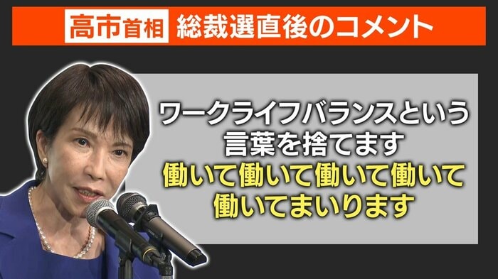 総裁選で「ワークライフバランスという言葉を捨てる」と決意表明した高市氏。自民党内からも、「いいパフォーマンスをするには、休憩は必要ではないか」と声が挙がる中、“働き方”が問われています。