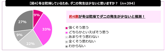 調査では、「冬は乾燥しているため、ダニの発生は少ないと思いますか?」との質問に対し、40.9%が「そう思う」と回答。 【図4】