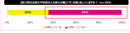 ■秋の衣替えや布団の入れ替え時にダニ対策をしていない人は64%。
