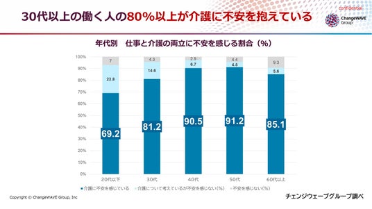 ・30代以上の働く人の8割超が仕事と介護の両立に不安。特に40代・50代は90%以上が不安