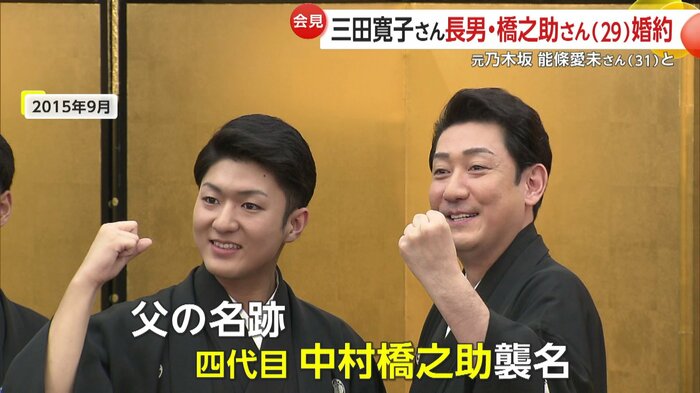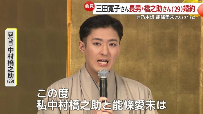 この度、私中村橋之助と能條愛未は、婚約いたします運びと相成りましたことを、ここにご報告いたします。