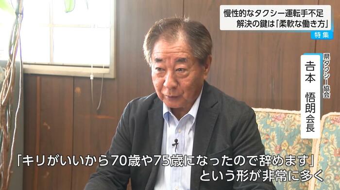 県タクシー協会の吉本悟朗会長は、「キリがいいから70歳や75歳で辞めます、という形が非常に多い。新しい人も入ってきているが、辞める人もいるため、なかなか運転手が増えない」と現状を語る。