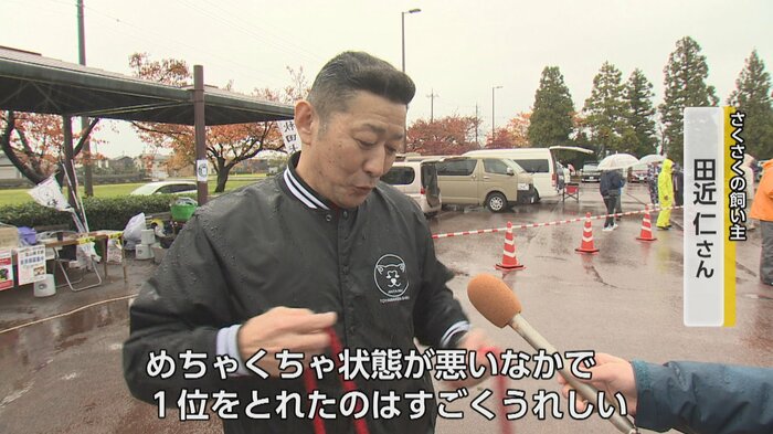 飼い主の田近仁さんは喜びを隠せない様子で、「めちゃくちゃ状態が悪いなかで1位をとれたのはすごくうれしい。もっと状態が良ければ、ランクが『優秀』ではなく『特優』とれたら最高だったが、それはおあずけ、目標にしてこれからも頑張っていく」と語った。