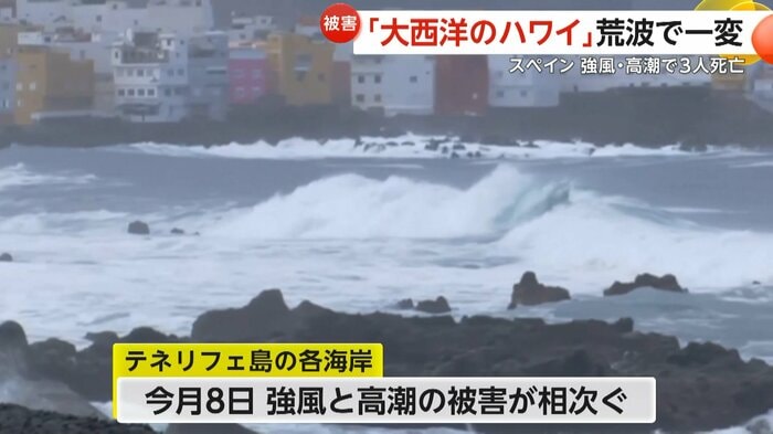 地元メディアによると、8日、テネリフェ島の各海岸で強風と高潮の被害が相次ぎ、男性2人と女性1人が波にさらわれ死亡した。