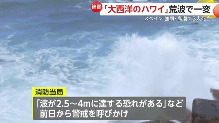 現地の消防当局は、前日から「波が2.5mから4mに達する恐れがある」などとして警戒を呼びかけていた。