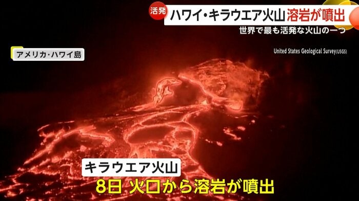 一方、アメリカ・ハワイ島では8日、キラウエア火山の火口から溶岩が噴出しているのが確認された。