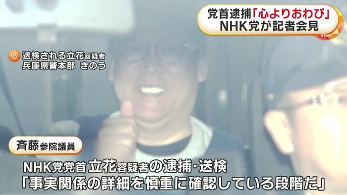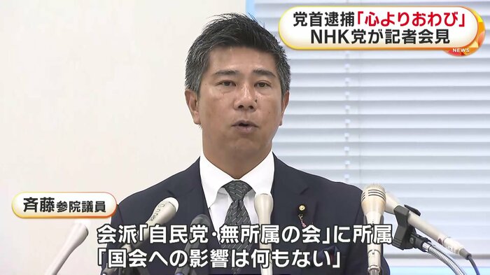 名誉毀損の疑いで立花容疑者が逮捕・送検されたことについて、NHK党の斉藤参議院議員は「事実関係の詳細を慎重に確認している段階だ」と述べた。