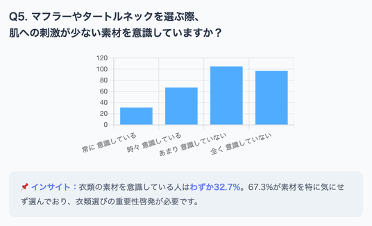 「マフラーやタートルネックを選ぶ際、肌への刺激が少ない素材を意識していますか?」