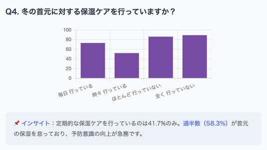 冬の首元スキンケアについて、定期的な保湿を行っている人は41.7%にとどまり、過半数が特別なケアをしていないことが明らかになりました。
