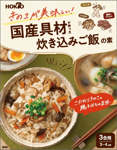 ■商品特徴 国産4種のきのこを贅沢に使った、風味豊かな炊き込みご飯の素です。