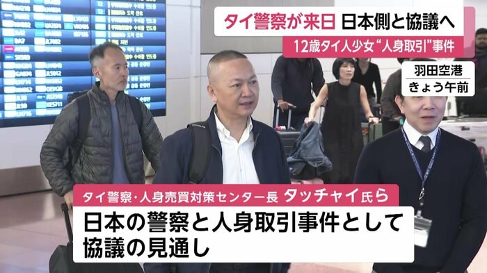 11日朝、羽田空港に到着したタイ警察・人身売買対策センター長のタッチャイ氏らは、少女がいた店を視察するなどして、日本の警察と人身取引事件として協議する見通しだ。