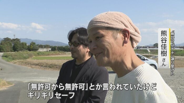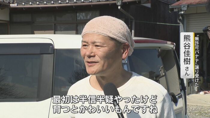 「最初は、バナナが育つか、半信半疑やったけど、育つと可愛いもんです」と話すのは、2年前に“無許可バナナ”を江頭さんから譲り受けた熊谷佳樹さん。江頭さんと高校時代からの知り合いだという。