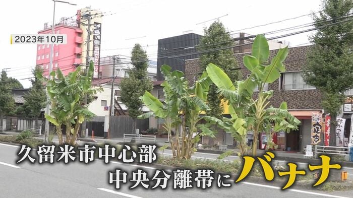 2年前の2023年10月。福岡・久留米市の中心部を走る道路の中央分離帯。大きな葉を持つ植物が生えていた。そこだけ南国の風景だ。植物は3株のバナナ。たわわに実をつけていた。
