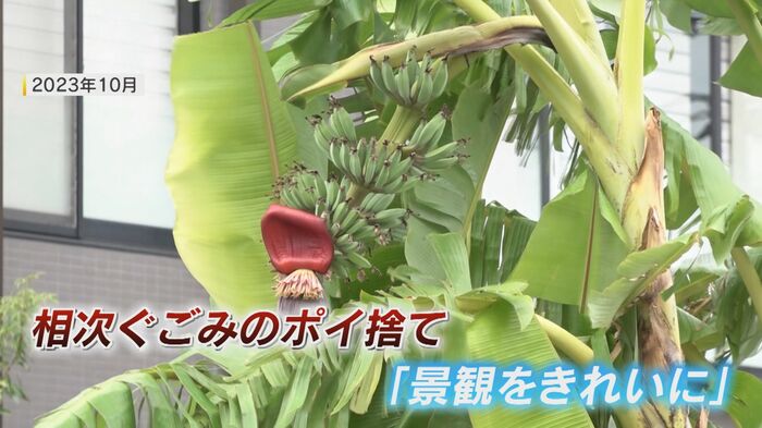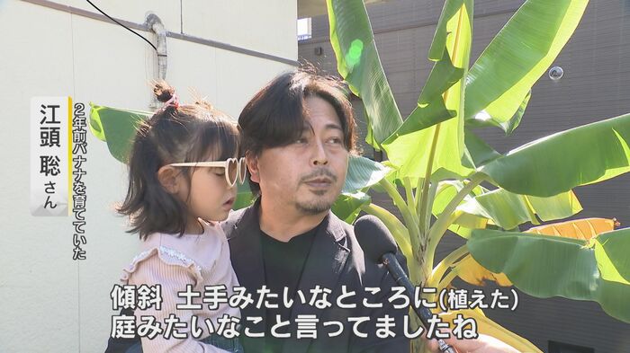 当時、現場を訪れた取材班の前に現れたのは、バナナに水やりをする男性。バナナを植えたという近くに住む江頭聡さん(53)だ。この市道付近でゴミのポイ捨てが相次いでいたため、景観を綺麗にしたいという思いからバナナを育て始めたという。