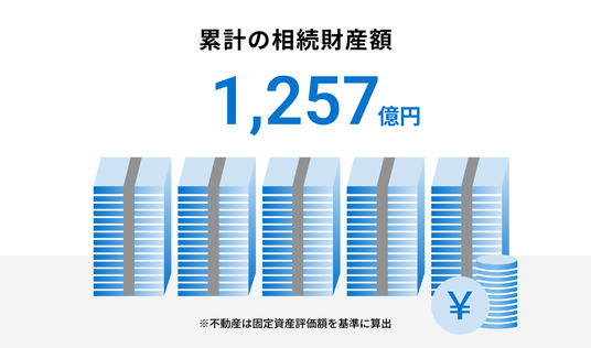 累計の相続財産額: 1,257億円を突破(不動産は固定資産評価を基準に算出)