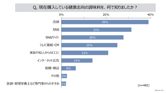 4.現在購入している健康志向の調味料を知ったきっかけは「店頭」39%、「SNS」31%