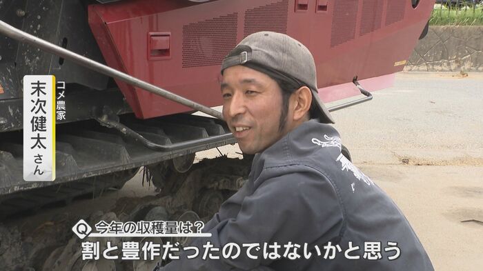 10月末、今季の稲刈りを終えた久留米市のコメ農家、末次健太さん。「収穫量は割と豊作だったかなと思います。台風が来なかったり、天気が良かったり。飼料用に回していたのを食米用に回したという部分はありますね」という。
