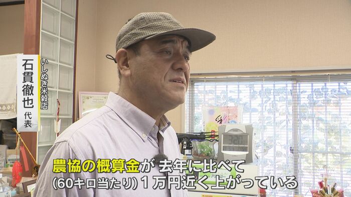その販売価格は、前年の同じ時期より1000円ほど高い、4000円台半ば。石貫さんは「去年より豊作にはなっているんですけど、仕入れ自体が高かった。農協の概算金が去年に比べて(60キロ当たり)1万円近く上がっていますので」と話す。